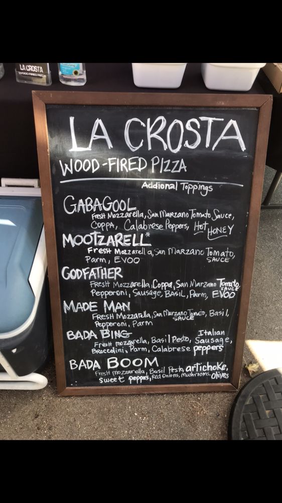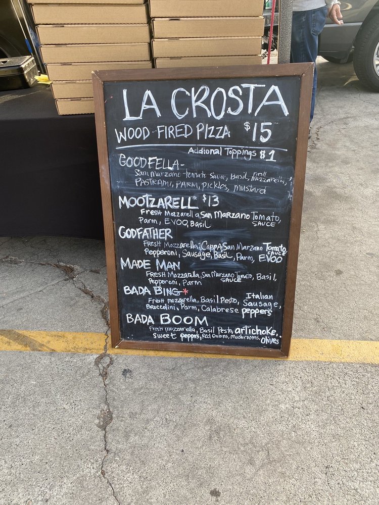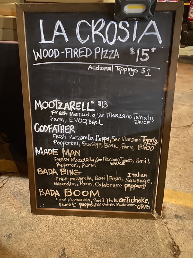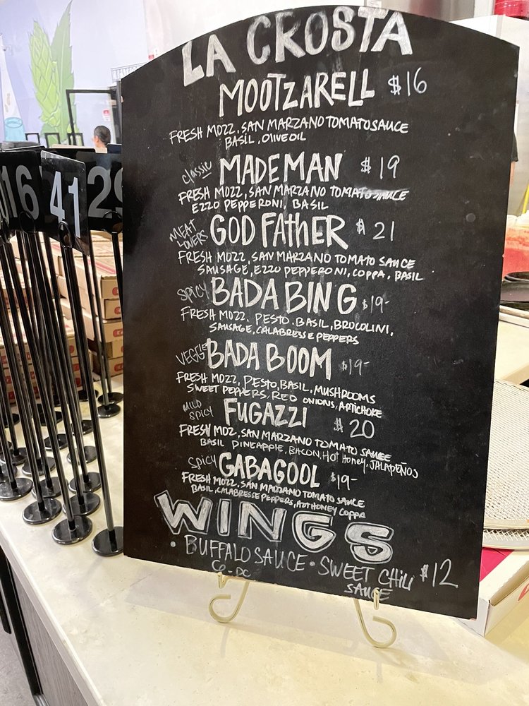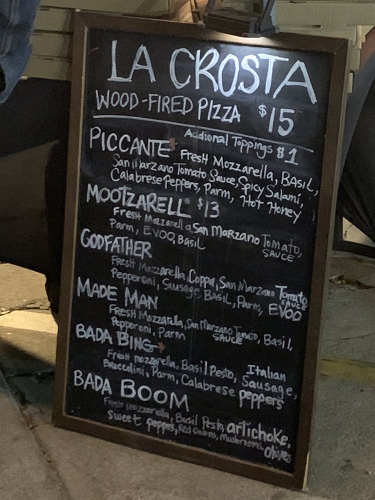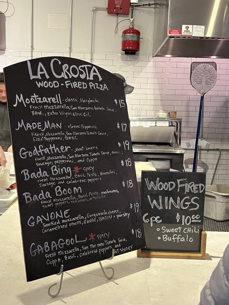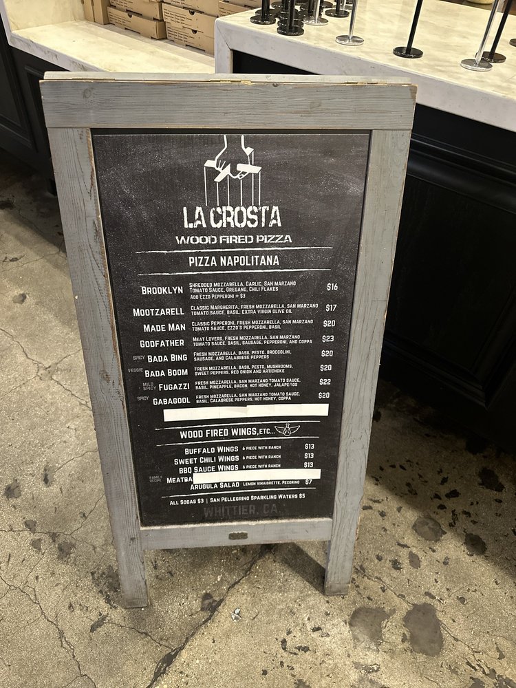 La Crosta Wood Fired Pizza, located in Whittier, CA, offers a variety of wood-fired pizzas, wings, and salads. The menu includes unique pizza creations like the "MadeMan" with pepperoni cups and fresh mozzarella, or the "Bada Boom" with basil pesto and a medley of toppings. Customers rave about the quality of the pizza, with crispy wood-fired crusts and flavorful toppings. The wings are also a highlight, with options like sweet chili and BBQ. The casual setting is perfect for groups, with both indoor and outdoor seating available. While some customers mention the pizzas being slightly small for the price, the overall consensus is positive, praising the delicious food and friendly service. La Crosta Wood Fired Pizza is a must-visit for pizza lovers looking for a unique dining experience.